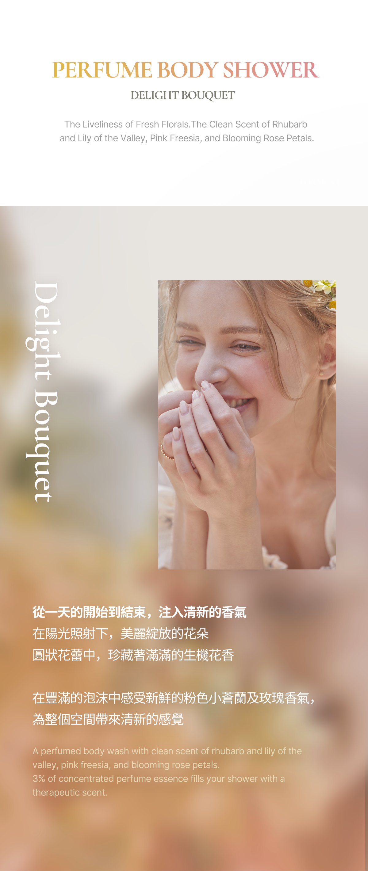 有效期間:23/05/2025買一送一含有AQUARICH成分,豐富水潤泡沫能夠輕柔洗淨身體,打造光滑柔嫩肌膚。Natural Protector專利成分,含有深層保濕功能,能夠防止洗澡後肌膚的緊繃不適感。充滿生機的芬芳花香,注入至Delight Bouquet之中將愉悅的休息時光,變得更加豐富且幸福洗澡後,也能維持長時間的香氣餘韻